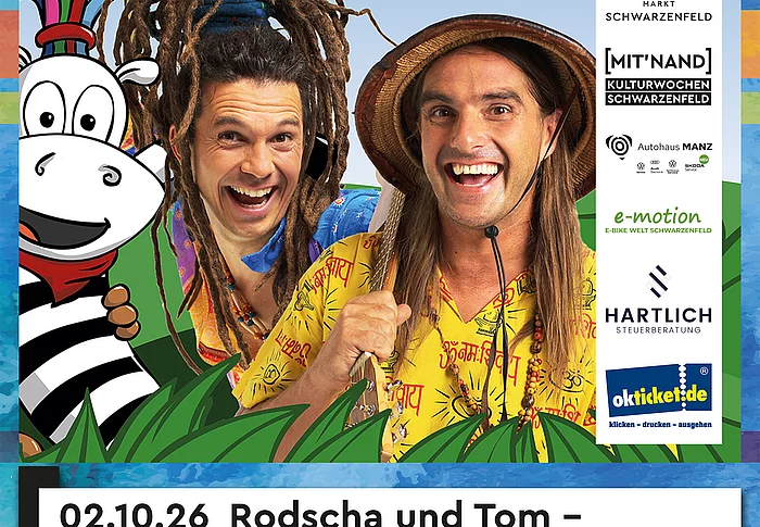 Erlebe mit den KiKA- und YouTube-Stars Rodscha und Tom ein unvergessliches Mitmach-Konzert. Ihre mitreißende Musik entführt dich in eine Welt voller Fantasie. Sie kommen am 02. Oktober 2026 nach Schwarzenfeld.