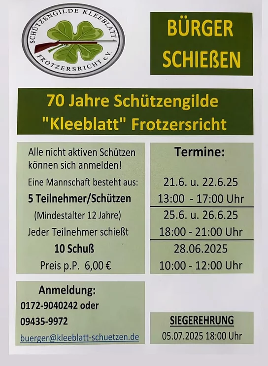 Bürgerschießen 70 Jahre Kleeblattschützen