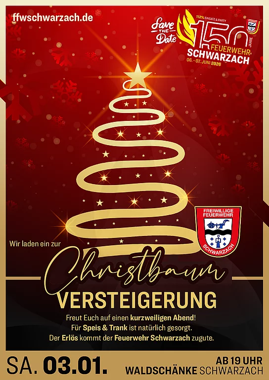 Alle 2 Jahre (im Wechsel mit den Schützen) lädt die Feuerwehr Schwarzach zur Christbaumversteigerung in die Waldschänke nach Schwarzach ein.