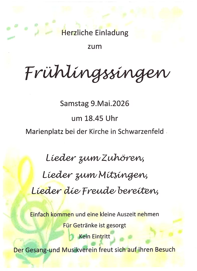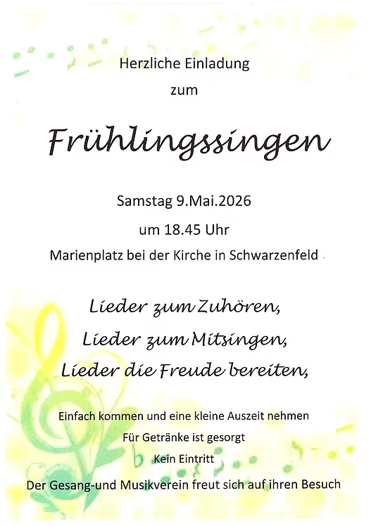 Offenes Singen am Marienplatz zwischen Kirche und Pfarrheim. Kleine Auszeit nehmen und zuhören. Wir singen bekannte Lieder und Schlager. Für Getränke ist gesorgt. Der Gesangverein freut sich auf ihr Kommen.