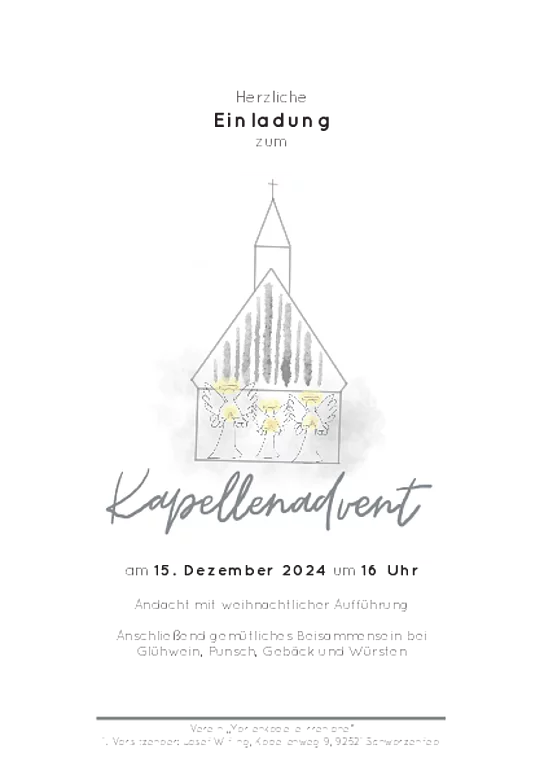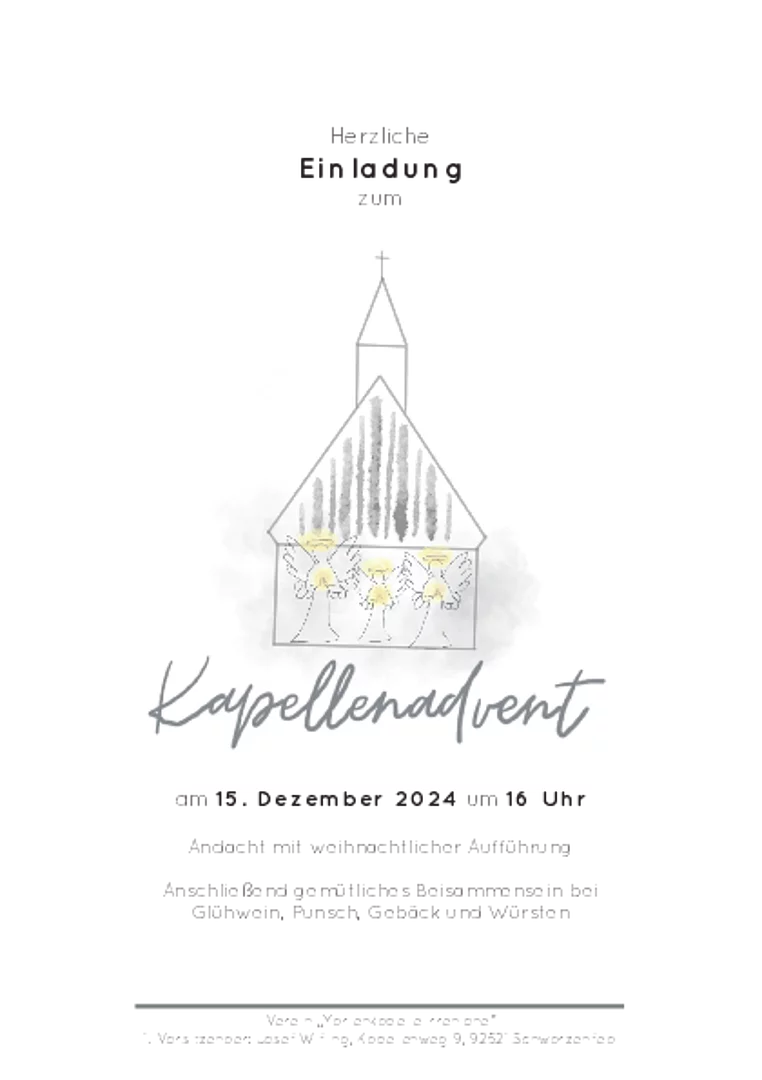 Andacht mit weihnachtlicher Aufführung am 15. Dezember 2024 um 16 Uhr.