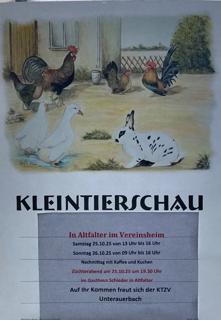 Züchterabend am 25.10.25 um 19:30 Uhr im Gasthaus Schieder in Altfalter