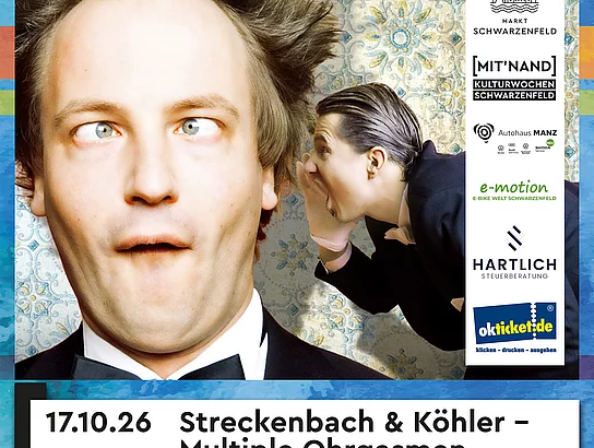 Ein Duo, wie es kaum ein zweites gibt! Tenor André von Streckenbach und sein Vasall Köhler bieten ein urkomisches Programm aus Comedy, Musik und Parodie. Am 17. Oktober 2026 in Schwarzenfeld.