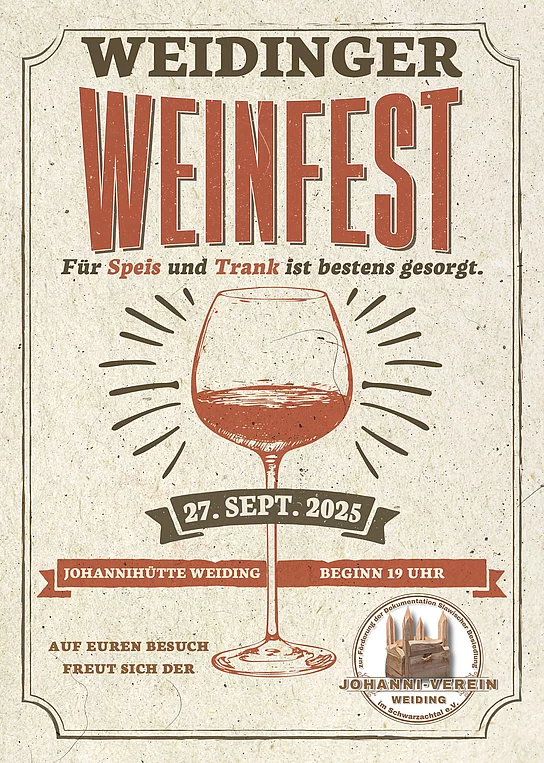 Ab 19 Uhr erwartet euch ein stimmungsvoller Abend mit feinen Weinen, bester Bewirtung und gemütlicher Atmosphäre. Für Speis und Trank ist natürlich bestens gesorgt. Kommt vorbei, stoßt mit uns an und genießt einen schönen Herbstabend in geselliger Runde! Auf euren Besuch freut sich der Johanni-Verein Weiding!