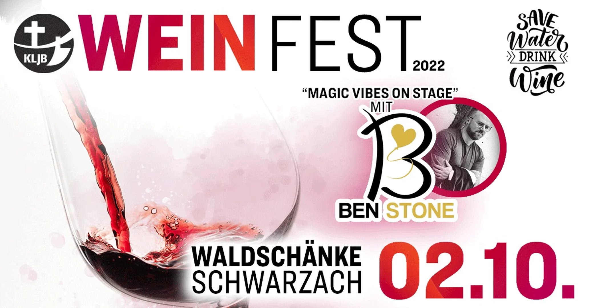 Die KLJB Schwarzach lädt zum Wein Fest 2022 am 02. Oktober (einen Tag vor dem Feiertag) in die Waldschänke nach Schwarzach ein.