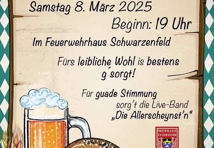 Starkbierfest der Freiwilligen Feuerwehr Schwarzenfeld mit süffigem Starkbier, leckeren Brotzeiten, toller Live Band und Barbetrieb.