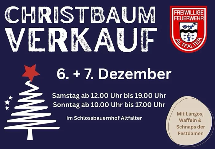 Christbaumverkauf der FW Altfalter am 06.12. von 12.00 Uhr bis 19.00 Uhr im Schlossbauernhof Altfalter.