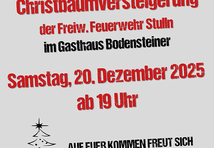 Die FF Sonnenried lädt wieder zur traditionellen Christbaumversteigerung ein.