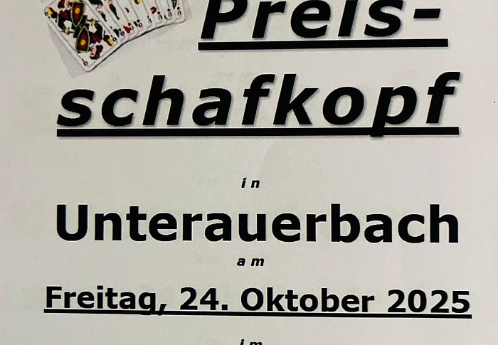 Herzliche Einladung zum Preisschafkopf in Unterauerbach
