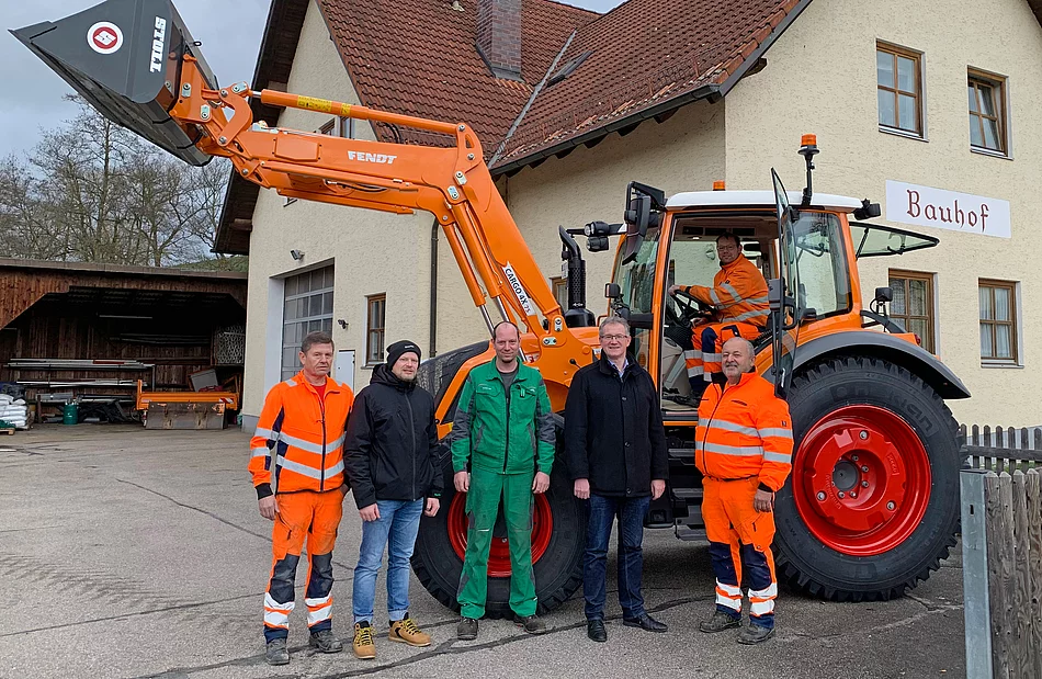 13.000 Betriebsstunden und zuletzt zahlreiche Mängel veranlassten letzten Herbst den Gemeinderat in Schwarzach b. Nabburg eine Ersatzbeschaffung für den nach 31 Jahren stark abgenutzten Bauhof-Geräteträger zu beschließen und auf den Weg zu bringen. Vor Kurzem konnte nun der neu angeschaffte Kommunaltraktor, ein Fendt 312 Vario Gen4, vom dreiköpfigen Schwarzacher Bauhof-Team und Bürgermeister Franz Grabinger in Empfang genommen werden. Mitarbeiter der BayWa aus Schwarzenfeld, von der das neue Fahrzeug samt Zubehör beschafft wurde, führten eine Einweisung für den Frontlader durch, der künftig im Gemeindebereich hauptsächlich für Lader-, Transport- und Mulcharbeiten eingesetzt werden wird. Mit dieser Ersatzbeschaffung ist der Bauhof Schwarzach, der ein weitläufiges Gemeindestraßennetz zu betreuen hat, zukunftsfähig ausgestattet, so Bürgermeister Grabinger bei der Übergabe des Traktors an die Bauhofmitarbeiter.