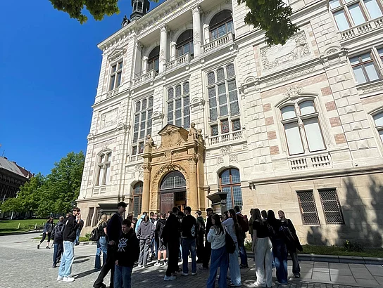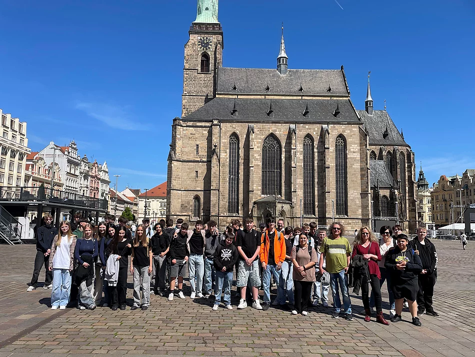 Am 29.04.2025 brachen die 8. und 9. Klasse der Mittelschule Schwarzenfeld mit dem Bus zu einer Tagessfahrt in die bekannte westböhmische Stadt Pilsen auf.