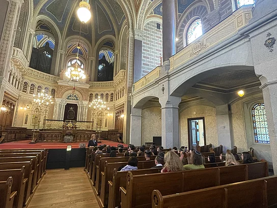 Am 29.04.2025 brachen die 8. und 9. Klasse der Mittelschule Schwarzenfeld mit dem Bus zu einer Tagessfahrt in die bekannte westböhmische Stadt Pilsen auf. Der Tag empfing uns mit strahlendem Sonnenschein und warmen Temperaturen, was ideale Voraussetzungen für einen lehrreichen Tag in der malerischen Kulturstadt darstellte. In Pilsen angekommen, wurden den Schülerinnen und Schülern sowie den Betreuenden bei einer Stadtführung bedeutende Bauwerke der viertgrößten Stadt Tschechiens vorgestellt. Darunter wurden beispielsweise das Rathaus am Marktplatz, die St.-BartholomäusKathedrale und die Große Synagoge besichtigt und mit interessanten Fakten untermauert. Die Große Synagoge ist beispielsweise mit einer Kapazität von 2500 Plätzen die zweitgrößte Synagoge Europas und die drittgrößte weltweit. Nicht nur die Größe, die neuromanische Architektur und die prunkvolle Innenarchitektur der Synagoge hinterließen einen bleibenden Eindruck. Auch die anderen Sehenswürdigkeiten machten die Stadt in Kombination mit den kulturellen, religiösen und geschichtlichen Informationen als Lernort lebendig und greifbar. Im Anschluss hatten die Schülerinnen und Schüler die Gelegenheit Pilsen selbstständig zu erkunden, weitere Eindrücke zu sammeln und das großartige Wetter zu genießen, bevor es schließlich nach einem gelungenen Tag wieder zurück in die Heimat ging. Die Bildungsfahrt nach Pilsen fand in Kooperation mit den Jugendsozialarbeiterinnen der Mittelschule Schwarzendfeld sowie dem Kreisjugendamt Schwandorf statt. Linda Buss (Sozialpädagogin, B.A.)