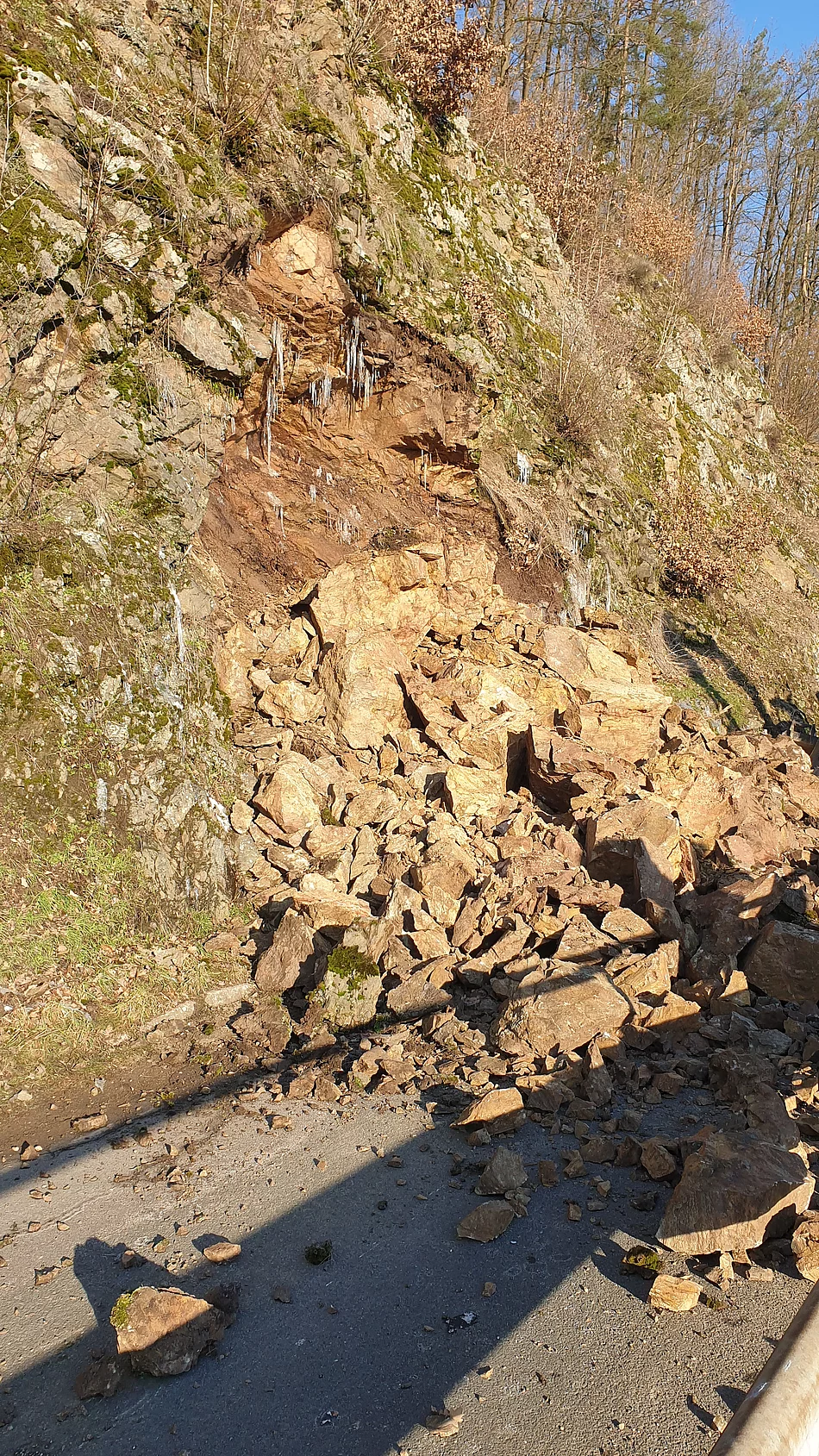 Ein Felssturz sorgt für die Sperrung der Gemeindeverbindungsstraße zwischen Stulln und Nabburg. Sie ist derzeit nicht passierbar.