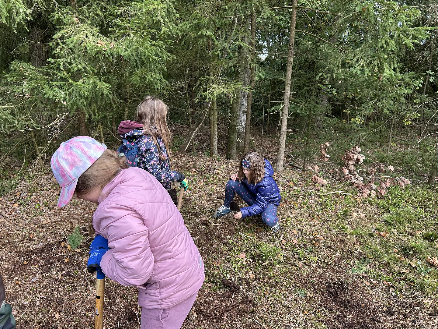 Mit Unterstützung von Richard Kurz und dem 1. Bürgermeister Herrn Neumeier griffen die Kinder selbst zum Spaten und setzten die kleinen Setzlinge in die Erde. Fachkundige Begleitung erhielten sie dabei von Thomas Hebauer vom Forstrevier I (AELF Schwandorf), der anschaulich erklärte, warum Bäume so wichtig für unser Klima sind und geduldig alle Fragen der neugierigen Drittklässler beantwortete.