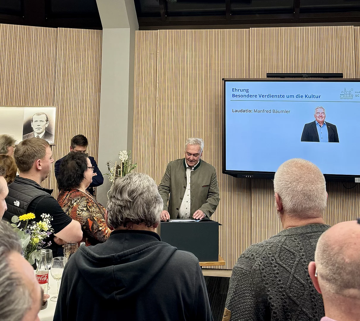 Auf Antrag eines Marktrates hin, wurde in der nichtöffentlichen Sitzung des Hauptverwaltungsausschusses am 20.10.25 das Vorhaben, nämlich die Geschwister Winterer besonders auszuzeichnen erstmals behandelt und vom Marktgemeinderat in der Zusammenkunft vom 17.11.25 die Verleihung eines Ehrenzeichens für besondere Verdienste um die Kultur des Marktes einstimmig beschlossen. Die nun folgende Auszeichnung wird gemäß Satzung an Personen verliehen, die sich, wie in diesem Fall im kulturellen Bereich, um das Ansehen des Marktes in hervorragendem Maße verdient gemacht haben. Zur Überreichung der Verdienstmedaille des Marktes Schwarzenfeld möchten wir alle ganz herzlich gratulieren.
