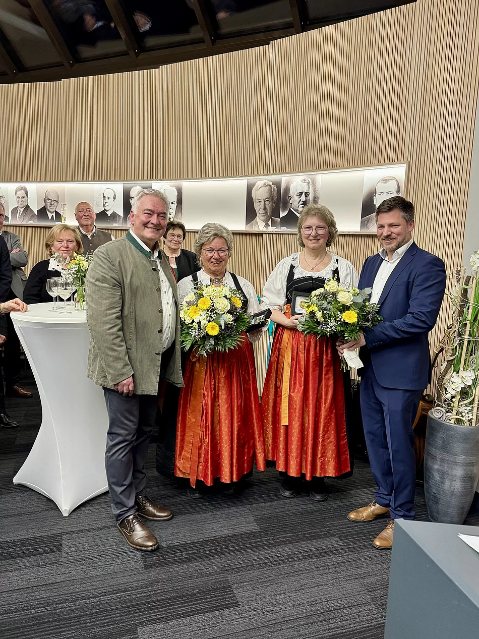 Liebe Helga, liebe Marita, irgendwie ist es vergleichbar mit einem Ritt durch einen großen Teil eures Lebens, was ich eben aufskizzieren durfte. Erinnerungen wurden aufgefrischt, so manchem Zuhörer das Geschwisterpaar Winterer ein Stück näher gebracht und ganz besondere Verdienste um eure, unsere Heimat veranschaulicht. Ihr Zwoa, ihr seids „A Stückl Hoamat, a Stückl Tradition“ um diesen bekannten Titel hier passend aufzugreifen.