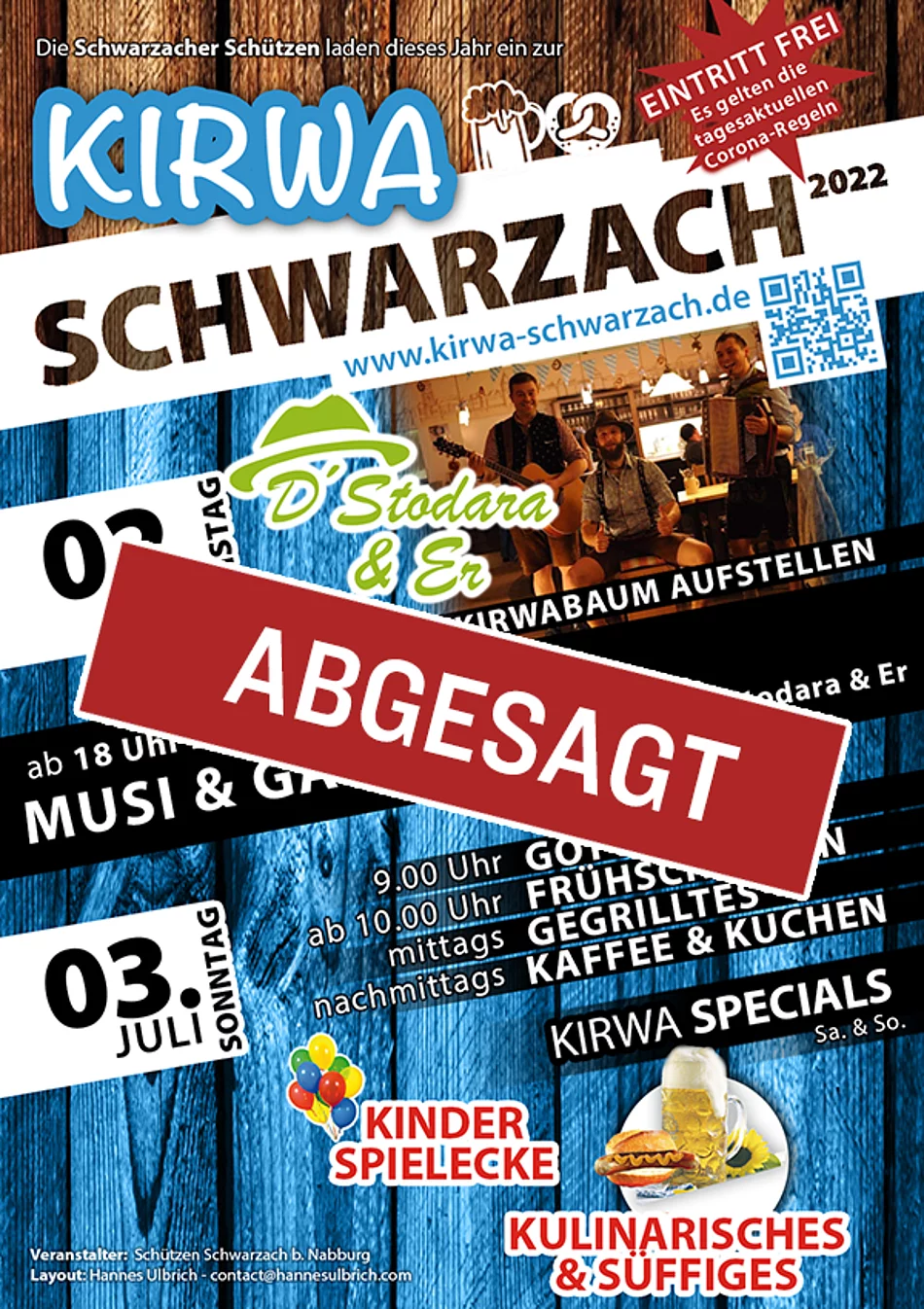 Die Kirwa Schwarzach am 2. und 3. Juli 2022 wurde aus gegebenem Anlass abgesagt.
