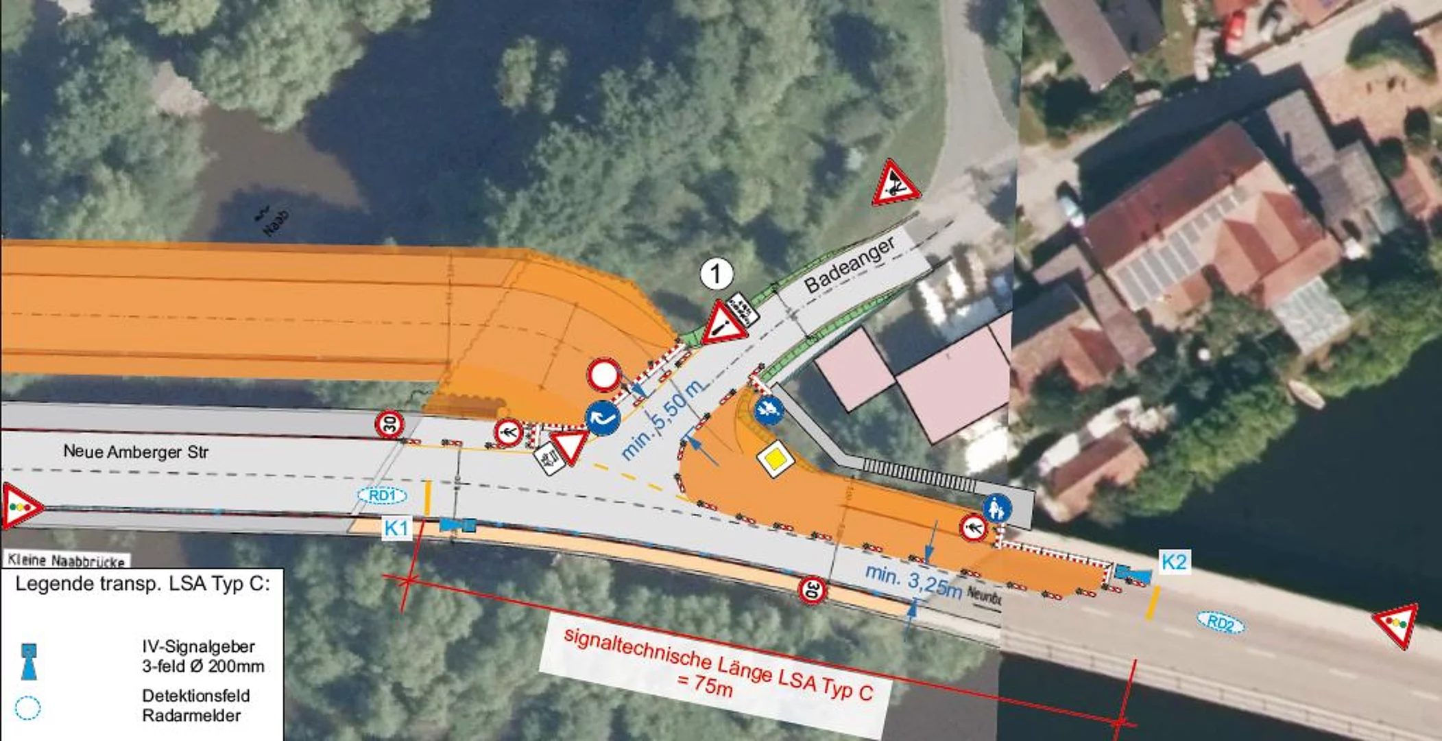 Die letzten Arbeiten an der Kleinen Naabbrücke stehen an. Diese sind – wie angekündigt – noch ein letztes Mal mit starken Einschränkungen verbunden.