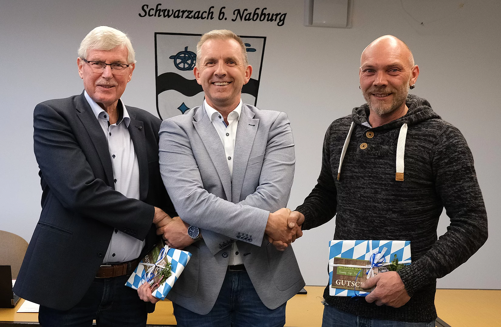 Er betonte eingangs, dass jede Kommunalwahl eine Zäsur darstellt und auch diesmal Veränderungen mit sich bringt: Drei von zwölf Sitzen werden neu besetzt. Zugleich erinnerte er daran, dass kommunale Ämter in einer Demokratie stets Ämter auf Zeit sind. In einem kurzen Rückblick ging Wilfahrt auf zentrale Themen der vergangenen sechs Jahre ein. Trotz finanzieller Herausforderungen wurden wichtige Projekte angestoßen bzw. umgesetzt, darunter die neue tragfähige Lösung für die Kinderbetreuung, die Kanalsanierung, der Glasfaserausbau, erste Straßensanierungen sowie Investitionen in die Feuerwehren und die Infrastruktur. Im Anschluss verabschiedete der Bürgermeister die ausscheidenden Gemeinderäte: Manuel Fleischmann für sechs Jahre engagierte Mitarbeit, Michael Singer, der seit 2020 im Gremium tätig war und zeitweise das Amt des Zweiten Bürgermeisters innehatte, sowie Georg Mayer, der den Gemeinderat seit 2008 mitprägte. Wilfahrt dankte allen dreien für ihren Einsatz, ihre Verlässlichkeit und ihr langjähriges Engagement zum Wohle der Gemeinde.