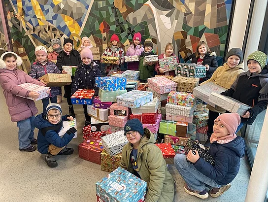 Auch in diesem Jahr beteiligte sich die Grund-und Mittelschule Schwarzenfeld wieder an der Aktion „Geschenk mit Herz“ – und das mit überwältigendem Erfolg. Dank der großartigen Hilfsbereitschaft konnten insgesamt 151 liebevoll gepackte Päckchen ( davon 42 aus Stulln) auf den Weg gebracht werden.