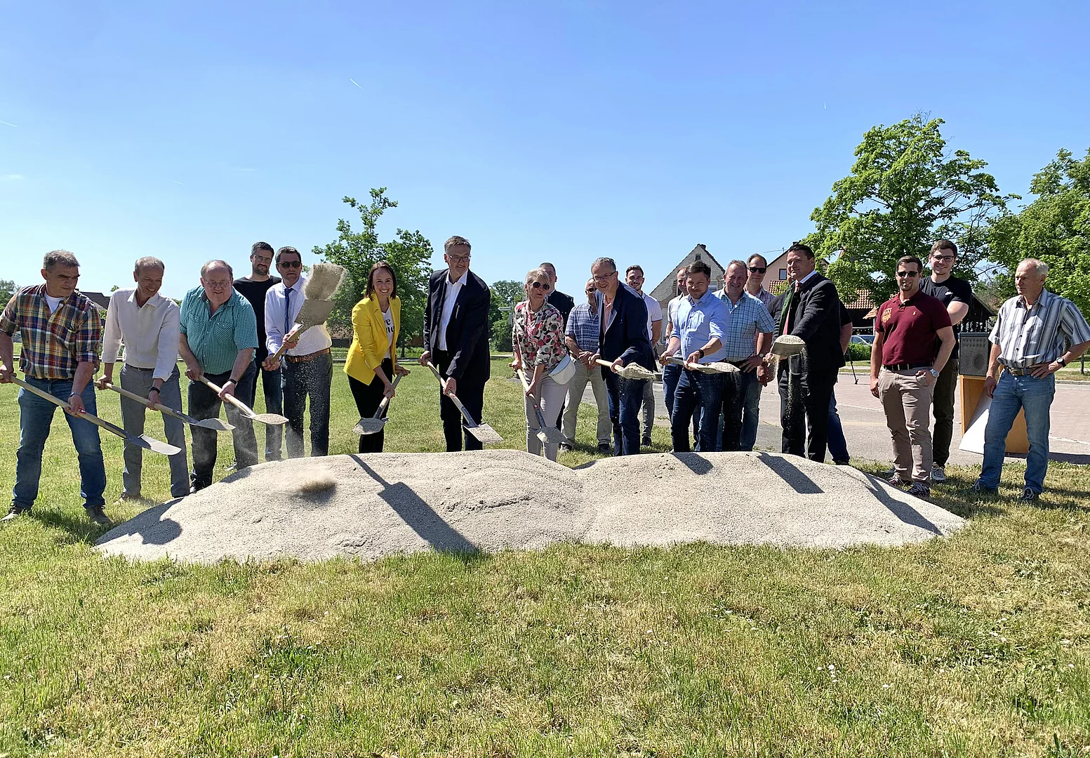 Zahlreiche Gäste und Beteiligte trafen sich am 31.05.2023 in der Stullner Ortsmitte zum feierlichen Spatenstich für den Neubau eines zweigruppigen Kindergartens mit zweigruppiger Kinderkrippe