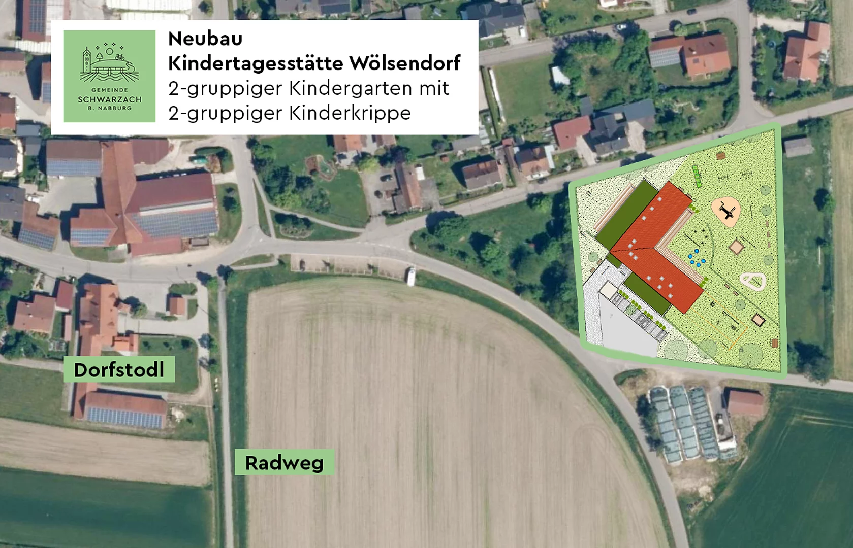 In der Sitzung am 14.12.2020 hat der Gemeinderat der Gemeinde Schwarzach b. Nabburg den einstimmigen Beschluss gefasst, eine Kindertagesstätte mit zwei Kindergartengruppen und zwei Kinderkrippengruppen zu errichten.