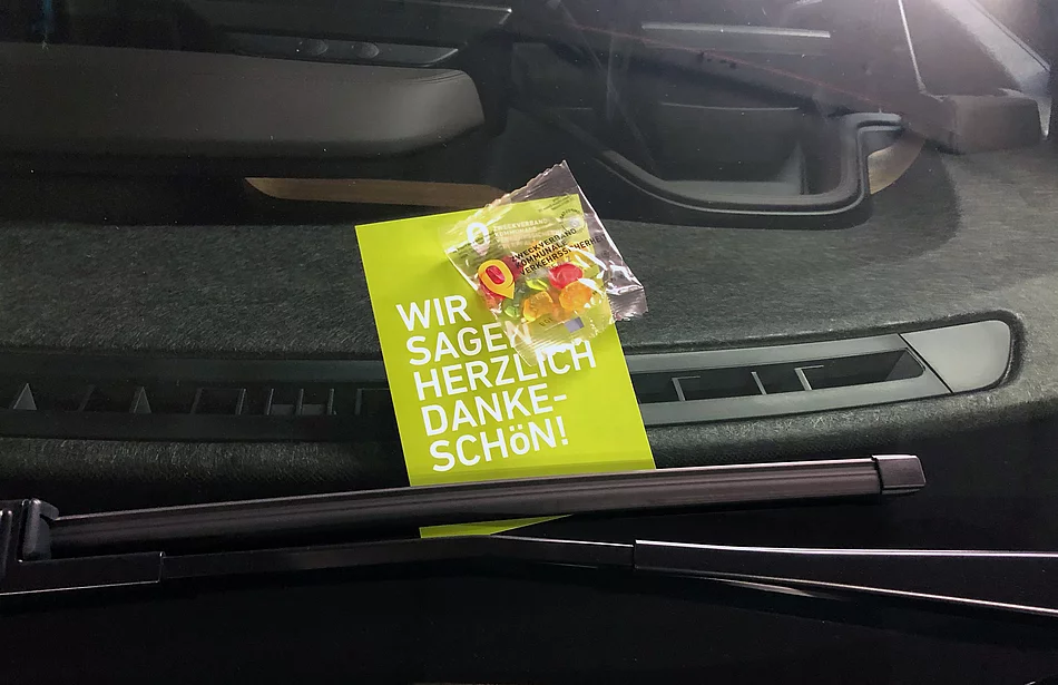 Die süße Mission hat beim Zweckverband bereits Tradition: Seit mehreren Jahren führt dieser regelmäßig Dankeschön-Aktionen für Richtigparker durch, beispielsweise vor Weihnachten oder am Valentinstag. Diesmal dürfen sich Richtigparker über eine grüne Dankeschön-Karte mit einem kleinen Päckchen Gummibärchen (in kompostierbarer Verpackung) freuen. „Wir wollen mit einer kleinen Aufmerksamkeit einfach mal bei all denen Danke sagen, die sich beim Parken vorschriftsmäßig und rücksichtsvoll verhalten – das ist schließlich der Großteil aller Verkehrsteilnehmer“, berichtet Simone Reinhardt, die kommissarische Geschäftsführerin beim ZV KVS Oberpfalz. Zudem liege das Hauptaugenmerk des Zweckverbands nicht auf der Anzahl der Verstöße, sondern darauf, diese immer weniger werden zu lassen, das gute Miteinander auf der Straße zu fördern und so den Verkehr nachhaltig sicherer zu gestalten.