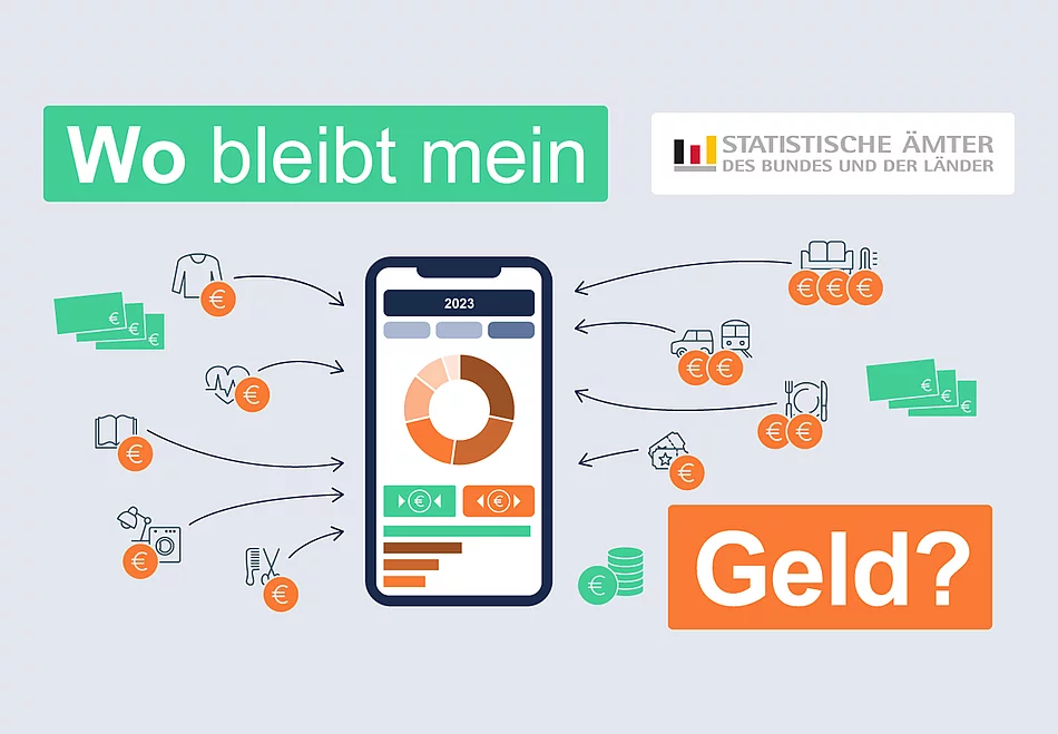 Wofür und wieviel Geld geben die Menschen in Deutschland aus? Wie hoch sind konkret die Ausgaben für Lebensmittel, Wohnen, Verkehr und andere Dinge? Antworten auf diese und weitere Fragen liefert die Einkommens- und Verbrauchsstichprobe, kurz EVS. Unter dem Motto „Wo bleibt mein Geld?“ führt das Bayerische Landesamt für Statistik gemeinsam mit den Statistischen Ämtern des Bundes und der Länder von Januar bis Dezember 2023 die nächste EVS durch. Dafür werden in Bayern rund 13 000 Haushalte gesucht, die sich an der größten freiwilligen Befragung der amtlichen Statistik beteiligen. Als Dankeschön erhalten sie eine Geldprämie von mindestens 100 Euro.