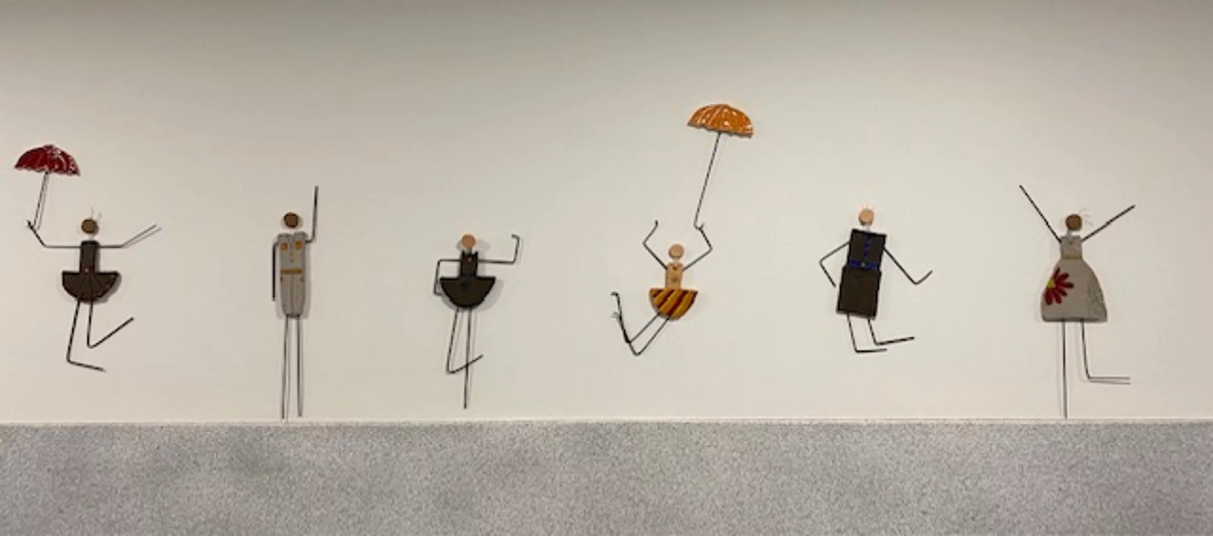 In diesem Schuljahr wurden die Arbeiten fertiggestellt. Eine besondere Herausforderung stellte das Formen der Arme und Beine dar, für die pulverbeschichtete Eisenstäbe zum Einsatz kamen. Mit großer Sorgfalt wurden diese angebracht. Das Bohren der Löcher an den Wänden durch den Bauhof ermöglichte schließlich die dauerhafte Installation der Kunstwerke.