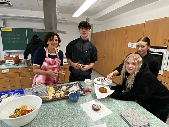 Traditionelles bayerisches „Kiachlausbacka“ in der Abschlussklasse 9aG und 8aG