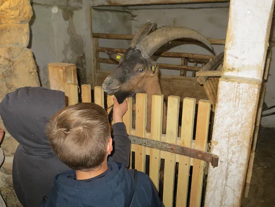 In der Pause blieb übrigens auch Zeit, sich mit den im Freilandmuseum ansässigen Tieren bekannt zu machen. Die Ziegen genossen die Streicheleinheiten jedenfalls in vollen Zügen…