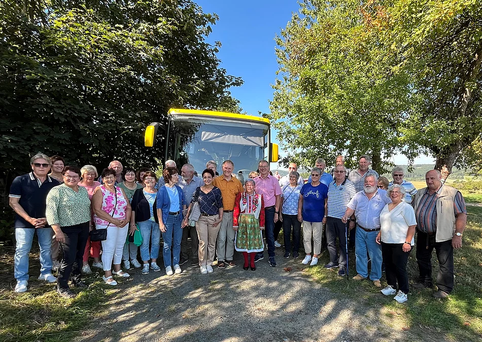 Bei bestem Wetter machten sich über 40 Teilnehmer auf den Weg und wurden herzlich empfangen. Der Festgottesdienst fand unter freiem Himmel statt – im Schatten mächtiger Eichen und bei sommerlicher Hitze. Zum Mittagessen ging es nach Uborsko, wo Zeit für Gespräche mit Pfarrer Adamec, den Bürgermeistern und Gemeinderäten blieb. Am Nachmittag führte der Ausflug zur Kapelle St. Marketa bei Dlazov. Vom nahen Aussichtsturm bot sich ein weiter Blick über die Landschaft. Außerdem gab es Einblicke in das renovierte Friedhofsgelände, ein neues Baugebiet und das frisch gestaltete Rathaus von Pocinovice. Zum Abschluss stärkten sich die Gäste bei Kaffee, Imbiss und den berühmten böhmischen Kolatschen. Bürgermeisterin Marie Homolková verabschiedete die Gruppe im Gemeindehaus. Reiseleiter Franz Grabinger bedankte sich im Namen aller für die Gastfreundschaft und überreichte ein Geschenk. Er freute sich, dass die Partnerschaft so lebendig bleibt – und dass Freundschaft auch über Grenzen hinweg selbstverständlich ist.