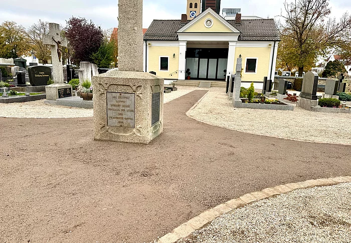 Am 30.10. und damit rechtzeitig vor Allerheiligen konnte die Wegebaumaßnahme am Friedhof erfolgreich abgeschlossen werden. Innerhalb von fünfeinhalb Wochen hatte die beauftragte Firma Mickan die Hauptwege des Friedhofs mit einer sogenannten wassergebundenen Schicht zwischen Einfassungssteinen aus Granit befestigt. Dabei handelt es sich um ein feines Sandschottergemisch, das nass eingebracht und dann verdichtet wird. Der Platz vor dem Leichenhaus wurde gepflastert, auch eine neue Rampe gibt es…