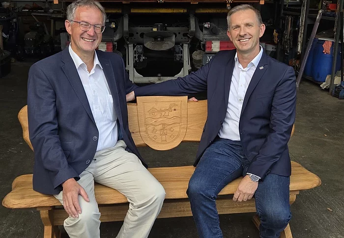 Am 15.09.2025 überreichte Bürgermeister Michael Wilfahrt ein Dankesgeschenk der Mitglieder des Gemeinderats an seinen Vorgänger, Franz Grabinger.