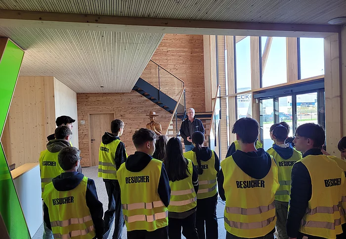 Im Rahmen eines "Praxis an Mittelschulen-Projekts" durften Schülerinnen und Schüler der Technik-Gruppen der 7. und 8. Klasse eine Betriebsbesichtigung bei der Firma Holzhaus Kurz durchführen.